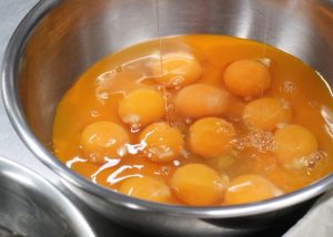 カステラは、卵の泡立てから焼き上げの温度管理まで、職人の勘と経験がものをいう